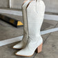 Botas cowboy en con textura drilo color hueso con tacón de madera.